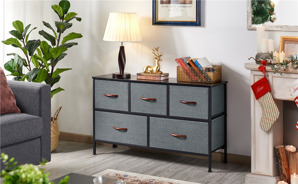 Yaheetech Modern 5 Drawer Organizer Wide Fabric Storage Tower Dark Gray